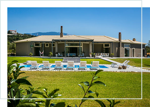 Villa Katrin is a 280 m² on 4000 m² surrounding land luxury villa which sleeps up to 8. It is an astounding, newly built property and is architecturally designed with stylish family living in mind and to take full advantage of Kefalonia’s wonderful climate. It is the only four bedroom single story luxury villa in Kefalonia contributing to its child and handicap friendly perks. Generous in size and located in a delightful rural setting at the foot of the historic village of Svoronata, this four-bedroom property offers all you could wish for from a luxury family holiday.