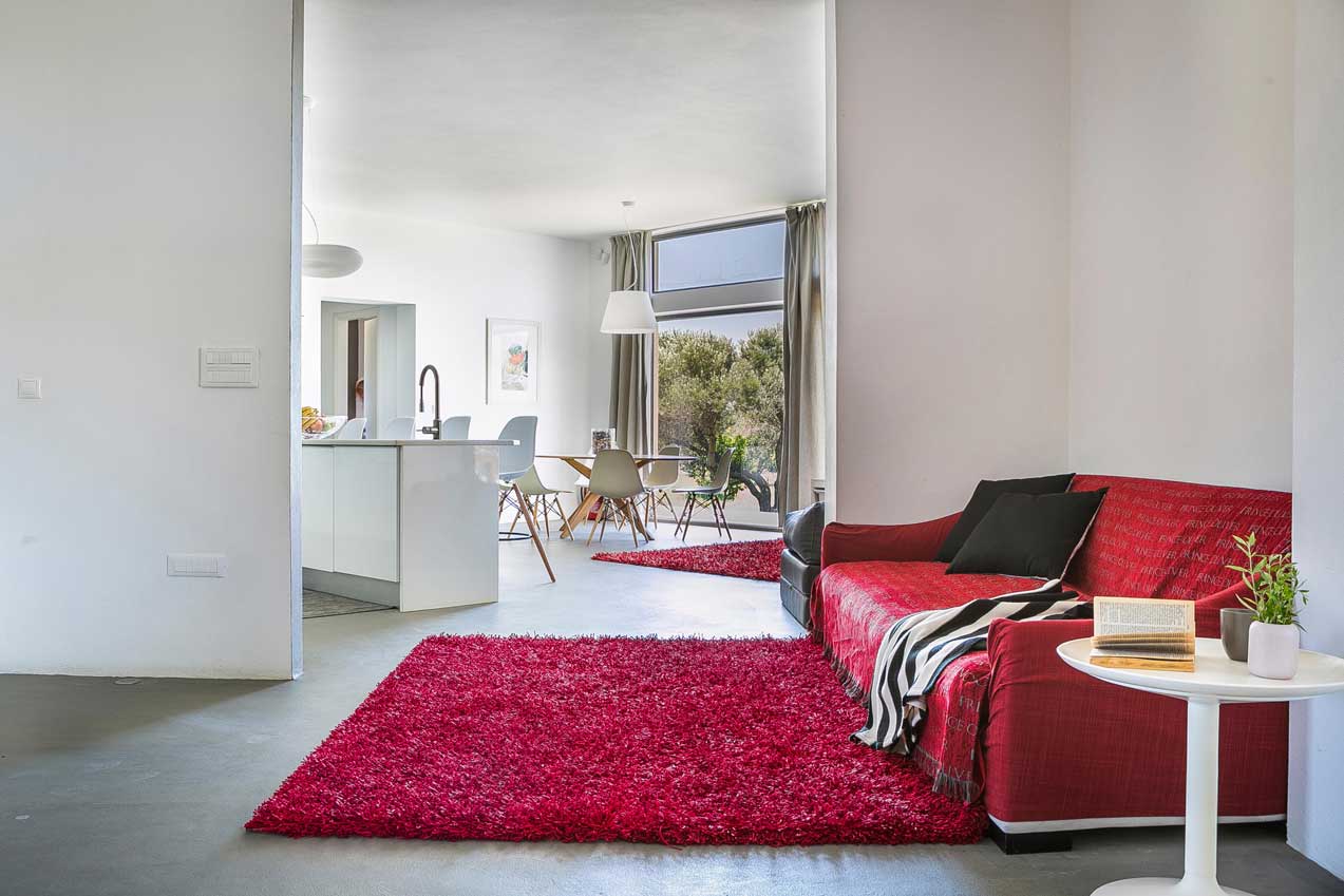 Villa Katrin is a 280 m² on 4000 m² surrounding land luxury villa which sleeps up to 8. It is an astounding, newly built property and is architecturally designed with stylish family living in mind and to take full advantage of Kefalonia’s wonderful climate. It is the only four bedroom single story luxury villa in Kefalonia contributing to its child and handicap friendly perks. Generous in size and located in a delightful rural setting at the foot of the historic village of Svoronata, this four-bedroom property offers all you could wish for from a luxury family holiday.
